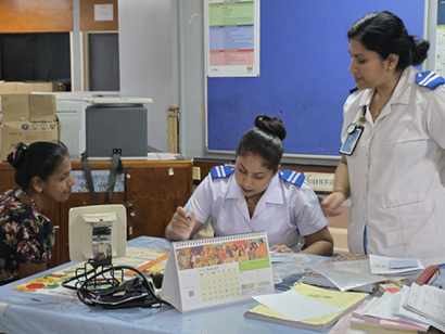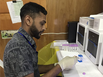 写真3: 北部地区の医療従事者が、臨床実習セッション中にGeneXpertシステムを使用して子宮頸部検体の処理を訓練する様子