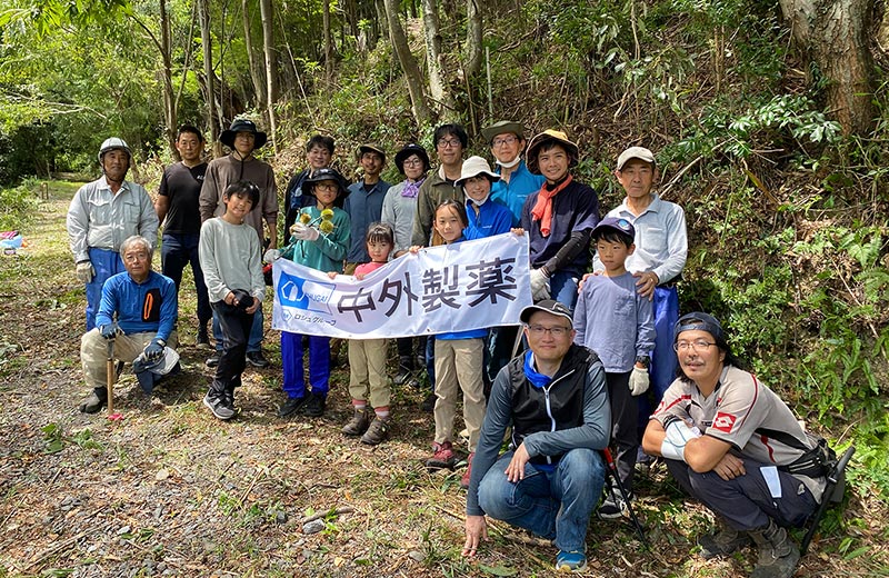 水は医薬品の製造にとって重要な原材料の一つであるとともに、持続的な社会に欠くことのできない重要な資源です。中外製薬グループは、水の使用量削減、排水管理に加え、生産拠点における森林整備を通じた水源保全活動を行うことで、当社の生産活動が地球環境に及ぼす影響を最小限に抑えるだけでなく、流域に住む方々と共同で使う豊かな水資源の保全に貢献していきたいと考えています。その取り組みとして、2019年から当社の藤枝工場で使用する水の水源となる静岡県榛原郡川根本町で、2022年からは浮間工場の水源となる埼玉県秩父郡横瀬町で、森林整備を通じた水源保全活動を継続的に行っています。2024年は川根本町で9月の灌木*5除去と11月の間伐作業*6を中外製薬グループの従業員とその家族が参加して実施しています。横瀬町の活動では、2023年に埼玉県および公益社団法人埼玉県農林公社と「埼玉県森林(もり)づくり協定」*4を締結し、この協定に基づき間伐作業を行いました。さらに2024年からは中外ライフサイエンスパーク横浜のある横浜市水道局と協定を締結し、「水源エコプロジェクトW-eco・p(ウィコップ)*7」に参加しています。当社の生産活動が地球環境へ与える影響を最小限に抑えるだけでなく、流域に住む方々と共に豊かな水資源の保全に貢献することを目指しています。水を大切に使い、きれいにして自然に還すことを事業活動の中で実践し、さらに水を育んでくれる森を整備する活動を今後も継続していきます。