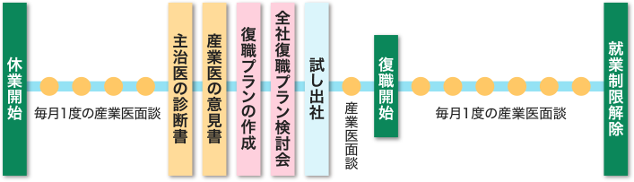 メンタルヘルス不調による休業者の復職支援などについても、上記の仕組みで対応し、以下のような個々に適した復職支援プログラムを継続的に実施しています。本プログラムにより、復職1年後の出社継続率が改善することが確認されています*1。また、メンタルヘルス不調についての理解の浸透や、適切な対応などについてのマネジャーへの研修など、啓発活動も継続して実施しています。